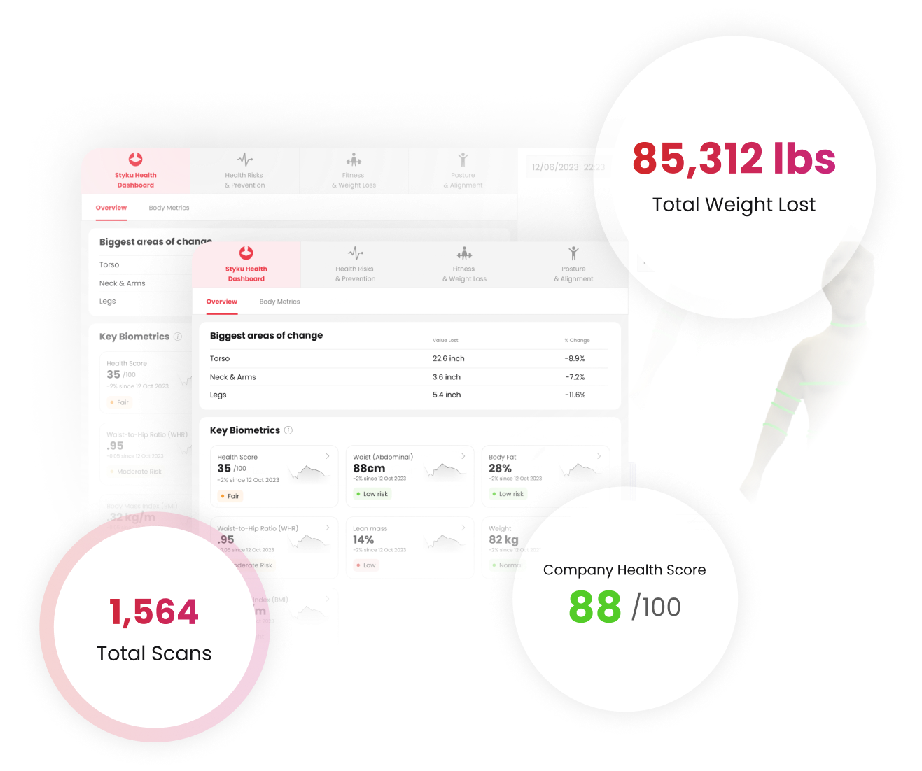 Access to real-time aggregate employee health scores and improvements, enabling an effective assessment of ROI on your existing wellness programs.